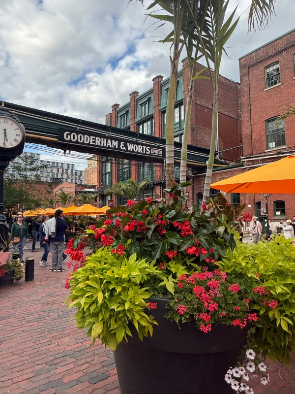 After lunch we made our way to the super cute, (and more suited to my preferences and style) Distillery District. The cobblestone streets. The refurbished industrial buildings. The beautiful flowers. Live music. The weather was perfect for window shopping and sitting outside with a drink.