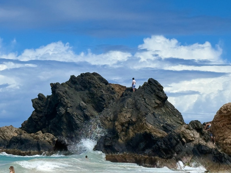 On the other side of the park, we stopped at the beach for a quick swim. Keagan decided to climb the rocks instead; some things in life don’t change.
